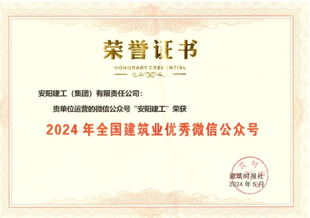 安陽建工集團(tuán)微信公眾號憑借瀏覽量、原創(chuàng)度、發(fā)布頻率、轉(zhuǎn)發(fā)量等諸多方面的綜合優(yōu)勢,榮獲“2024年全國建筑業(yè)優(yōu)秀微信公眾號”。集團(tuán)公司長期以來堅(jiān)持把公眾號作為企業(yè)宣傳的重要陣地,始終堅(jiān)持深入挖掘前沿動態(tài),政策法規(guī),技術(shù)創(chuàng)新等方面的信息,積極提供及時、準(zhǔn)確、有價值的新聞內(nèi)容。未來也將以此為契機(jī)持續(xù)提升微信公眾號的內(nèi)容品質(zhì),不斷探索創(chuàng)新,努力打造更具有影響力的行業(yè)微信公眾號。