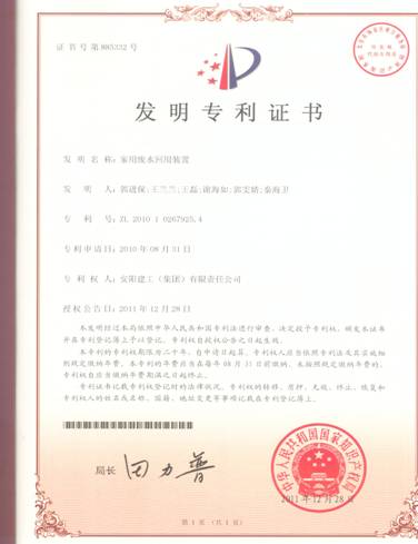 公司技術(shù)中心為實(shí)現(xiàn)企業(yè)發(fā)展規(guī)劃,為晉升特級(jí)企業(yè)做好基礎(chǔ)工作,根據(jù)施工總承包特級(jí)資質(zhì)有關(guān)要求,在發(fā)明專(zhuān)利方面深入挖掘課題,開(kāi)展相關(guān)工作,力爭(zhēng)使企業(yè)擁有核心技術(shù)。通過(guò)努力,發(fā)明專(zhuān)利“家用廢水回用裝置”經(jīng)中華人民共和國(guó)國(guó)家知識(shí)產(chǎn)權(quán)局專(zhuān)利法進(jìn)行審查,被授予發(fā)明專(zhuān)利證書(shū)。專(zhuān)利號(hào):ZL 2010 1 0267925.4,實(shí)現(xiàn)了發(fā)明專(zhuān)利領(lǐng)域零的突破。