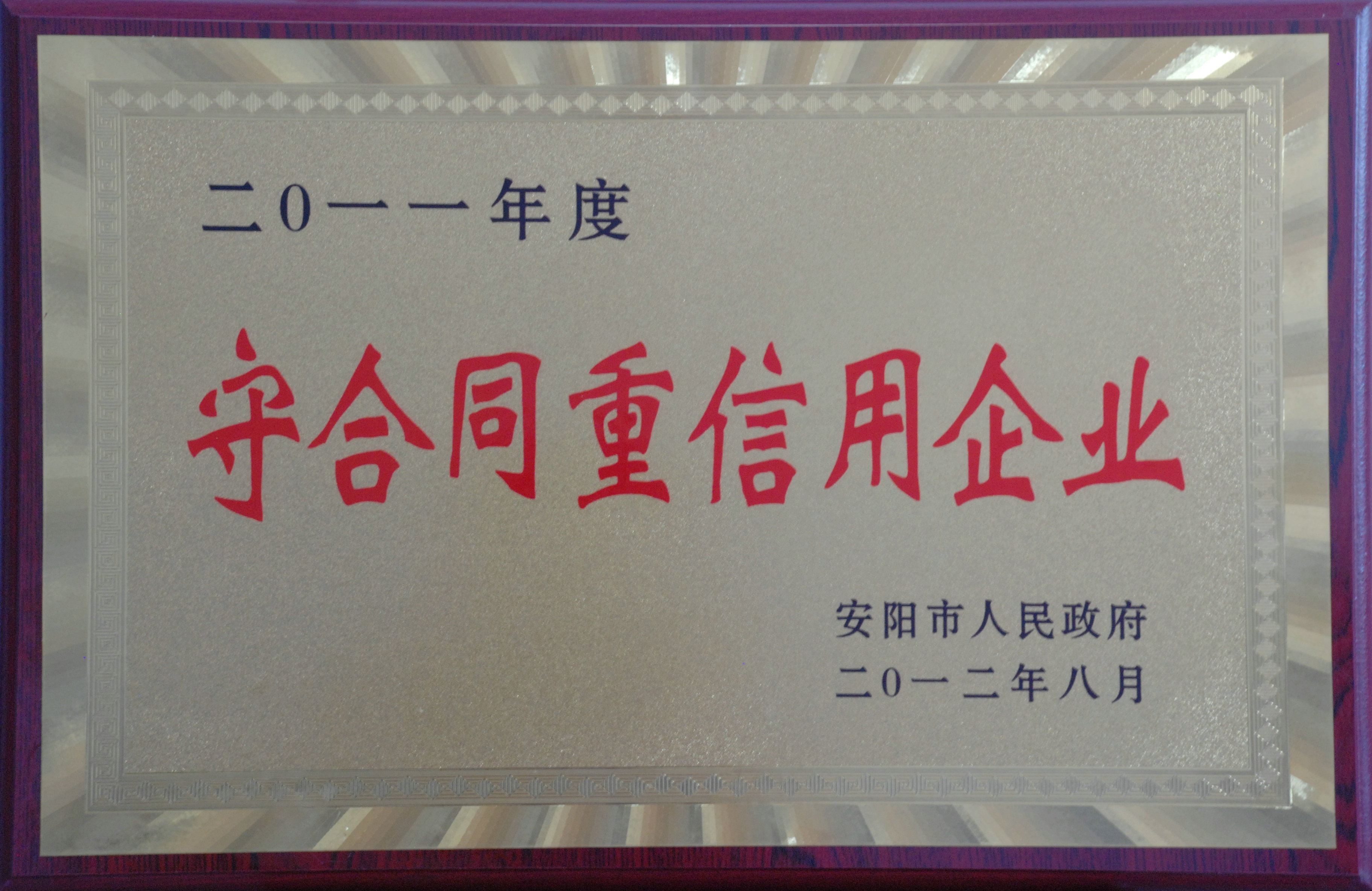 安陽建工(集團(tuán))近日榮獲2011年度安陽市“守合同重信用”企業(yè)稱號