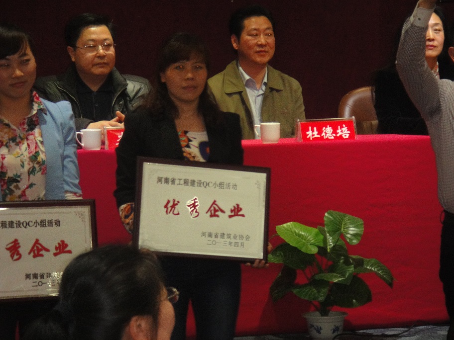 2013年4月19—24日,集團公司參加了2013年度河南省工程建設優(yōu)秀QC小組活動成果交流發(fā)布會,取得了豐碩的成果。 安陽建工(集團)榮獲2013年河南省工程建設QC小組活動優(yōu)秀企業(yè)稱號。安陽建工(集團)張巍屹QC小組榮獲一等獎;馮志和QC小組小組榮獲二等獎。同時在此省工程建設QC成果發(fā)布評比中,發(fā)布員聶磊個人發(fā)布成績突出,被授予“2012年河南省工程建設QC小組優(yōu)秀發(fā)布員”榮譽稱號。