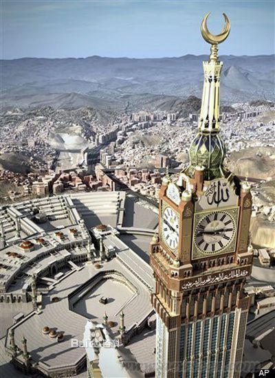 麥加皇家鐘塔飯店是一棟位于伊斯蘭教圣城—麥加的復(fù)合型建筑,自2011年開放以來,它就包攬了世界上最高的鐘樓、酒店,最巨大的鐘面等多個世界紀(jì)錄,在其附近正坐落著世界上最大的麥加大清真寺。游客在離鐘塔16英里處都能看到鐘樓塔尖上的金色月。