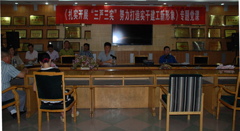 首先,馬書記宣讀了安陽市住建局《關(guān)于在住建系統(tǒng)黨員干部中開展“三嚴(yán)三實”專題教育的實施方案》的通知精神。隨后,黨委書記謝海如同志從講解“三嚴(yán)三實”的內(nèi)涵和重要意義、查找了一些黨員干部“不嚴(yán)不實”問題、和作為一個基層民營企業(yè)的黨員干部,如何踐行“三嚴(yán)三實”等方面進(jìn)行了講解。