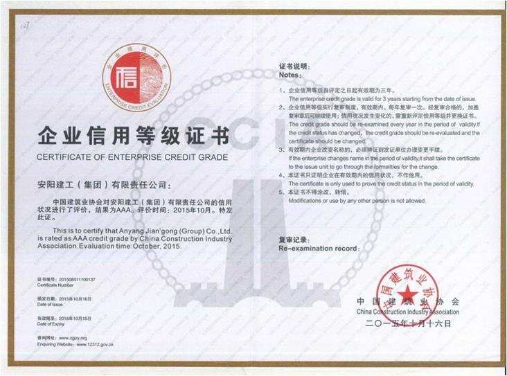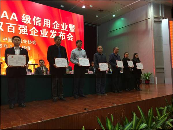2016年1月7日,中國建筑業(yè)協(xié)會在珠海隆重召開全國建筑業(yè)AAA級信用企業(yè)暨中國建筑業(yè)雙百強企業(yè)發(fā)布會,向我公司在內(nèi)的共277家2015年度全國建筑業(yè)AAA級信用企業(yè)和榮獲2014年度雙百強的企業(yè)頒發(fā)獎牌和證書,我公司很榮幸的作為企業(yè)代表上臺領取了AAA級信用企業(yè)證書。