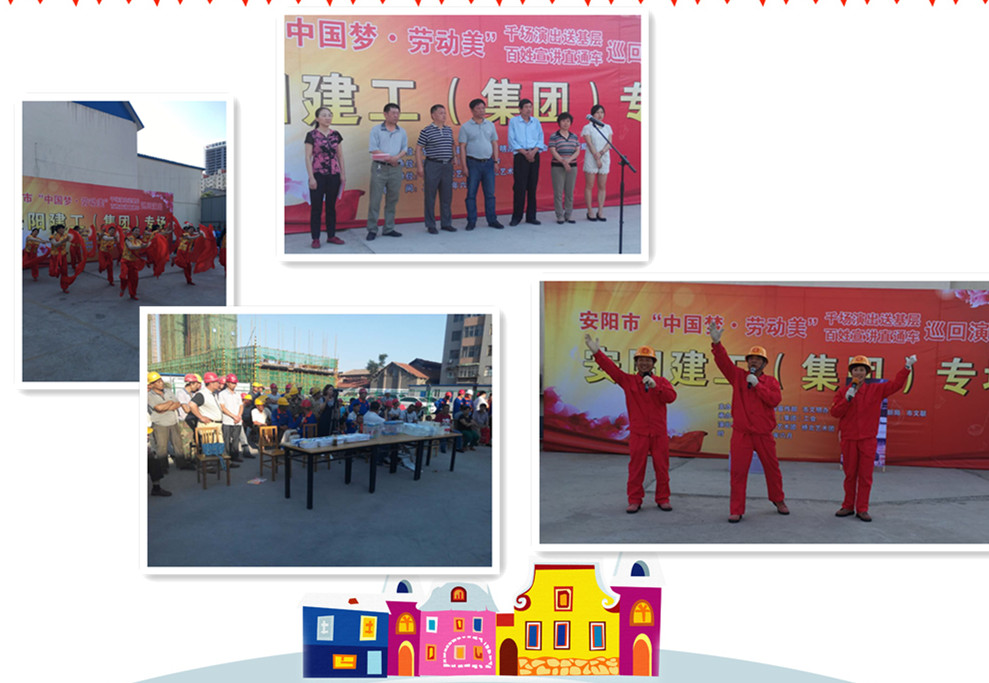 由我公司工會承辦的“送文化、送清涼”活動,在香山甲第項目部拉開序幕,安陽市總工會副主席宋主席、安陽市總工會保障部呂部長、安陽市城建水利工會梁主席、我集團公司董事長謝海如、公司工會主席馬松林等領(lǐng)導(dǎo)參加了活動儀式,活動中大家觀看了“中國夢 勞動美”千場文化送基層巡回演出安陽建工專場的首場演出,接受了總工會領(lǐng)導(dǎo)及公司工會為項目部工人送去的慰問品。同時,公司黨委書記謝海如還為基層黨支部送去《習(xí)近平總書記系列重要講話讀本》等黨建書籍。今年,我們工會把的“送文化、送清涼”結(jié)合在一起多站式開展,深入到一線項目部,呈現(xiàn)給大家的不僅僅是一臺臺思想性、藝術(shù)性、觀賞性和諧統(tǒng)一、樸素親切、生動鼓勁的精彩文藝節(jié)目,更為重要的是包含了工會對建工一線員工的親切關(guān)懷,充分體現(xiàn)了工會關(guān)愛基層、情系農(nóng)民工的深情厚意。此項活動將陸續(xù)在公司其他項目部繼續(xù)開展。 (聶磊)
