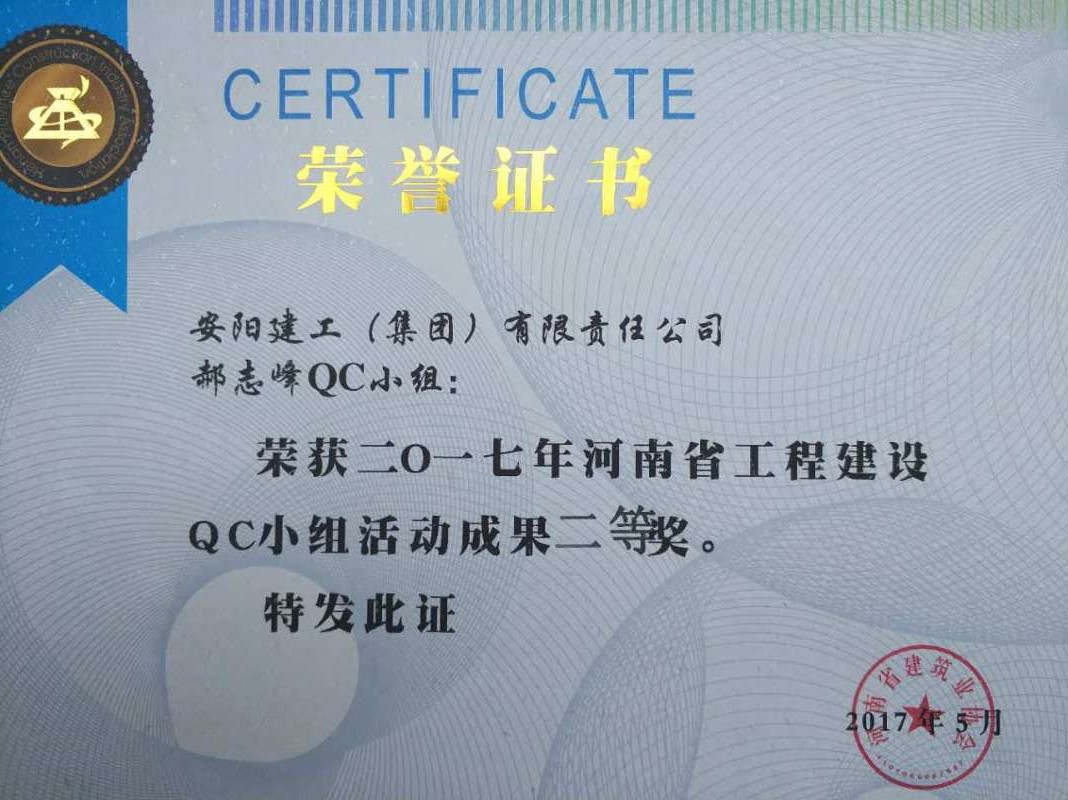 湯陰公安局項(xiàng)目在2017年榮獲省QC成果二等獎(jiǎng)