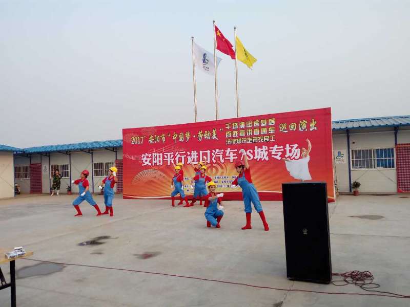 六月二十日下午集團(tuán)公司董事長(zhǎng)謝海如工會(huì)主席馬松林、副主席聶磊赴新能源項(xiàng)目部“送清涼、送文化”,為一線員工發(fā)放綠豆、西瓜、白糖、毛巾、香皂等慰問(wèn)品;并為項(xiàng)目部員工帶去《法律知識(shí)走進(jìn)農(nóng)民工》宣講及《中國(guó)夢(mèng)  勞動(dòng)美》文藝演出!