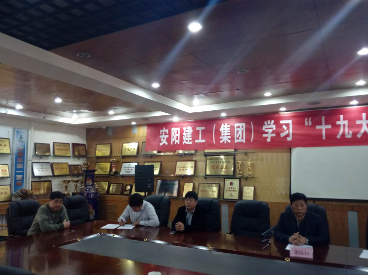 黨委副書記馬松林同志主持會議,宣讀《中共安陽建工(集團)有限責任公司委員會關于開展“學習貫徹十九大、砥礪奮進跟黨走”主題活動通知》、《關于學習宣傳貫徹黨的十九大精神的通知》,帶領全體黨員共同學習《十九大亮點》和《十九大關鍵詞》;會上,黨委書記謝海如同志帶領大家共同學習《十九大報告精簡版》,并做重要講話,指出公司全黨同志一定要永遠與全體員工同呼吸、共命運、心連心,繼續(xù)朝著實現建工戰(zhàn)略發(fā)展的宏偉目標奮勇前進。