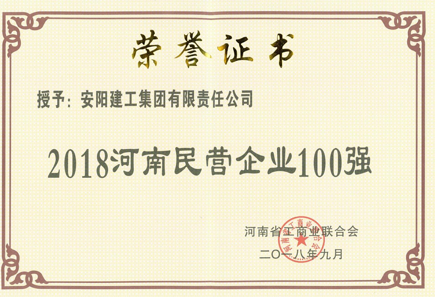 熱烈慶祝我公司榮登河南省民營企業(yè)100強光榮榜