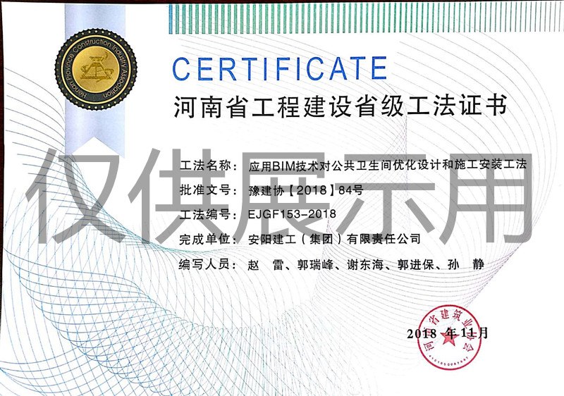 工程建設(shè)省級(jí)工法證書