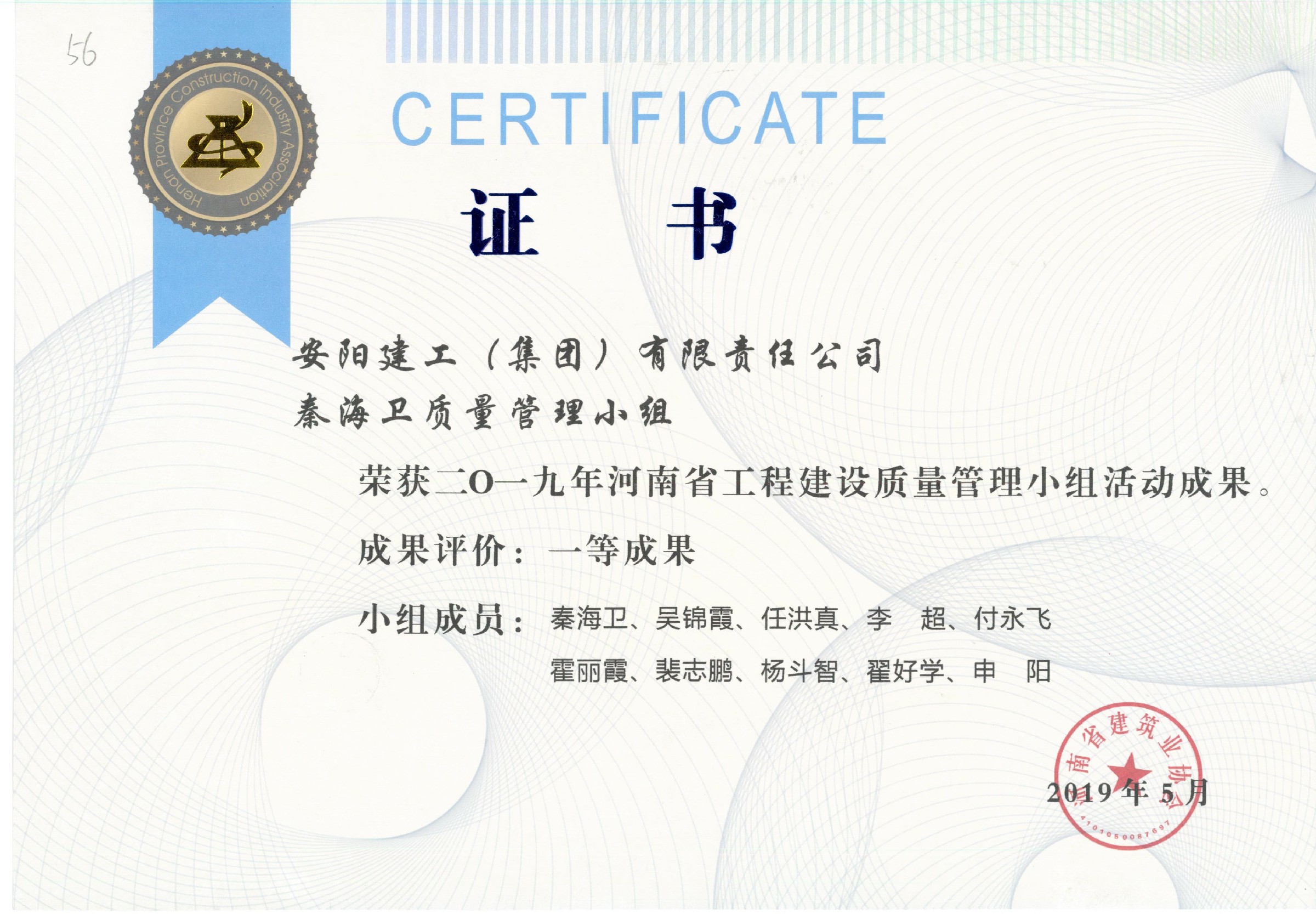 我公司秦海衛(wèi)QC小組榮獲2019年河南省工程建設(shè)QC小組活動(dòng)成果一等獎(jiǎng)