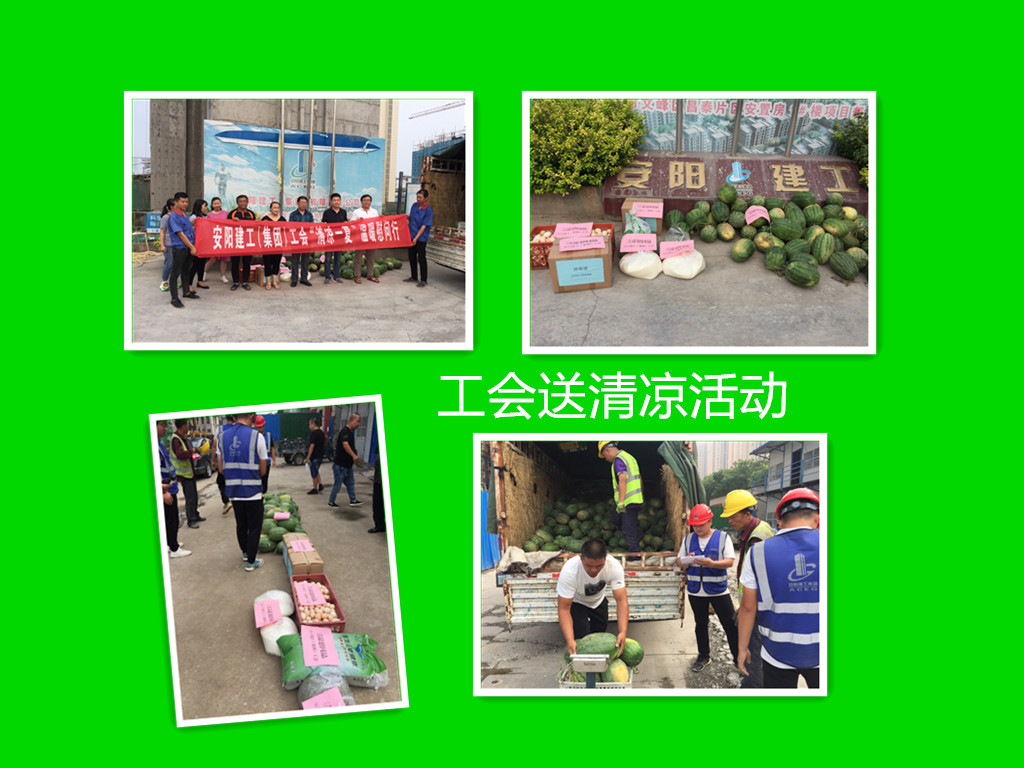 7月9日,第一批清涼物品先后送到了香山甲第、錦達世紀明珠、昌泰片區(qū)、通航孵化園、攀高教育園二期項目部,它們載著公司領(lǐng)導(dǎo)和公司工會對一線員工的滿滿關(guān)心,拉開了公司工會送清涼活動的序幕!其他的項目部莫羨慕,都有份兒,下周我們將繼續(xù)走起……!