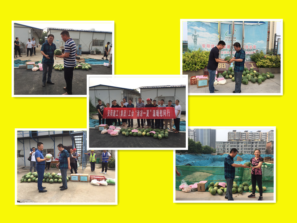 “工會送西瓜來嘍!”伴隨著工人的聲音,裝滿西瓜的汽車駛進了項目部大門口,公司工會主席馬松林、副主席聶磊在公司工程部、項目部陪同下,帶著香甜的西瓜、營養(yǎng)的雞蛋、溫暖的綠豆、甜滋滋的白糖、殺菌的消毒液等物品開始了今年的“清涼一夏”溫暖慰問行!