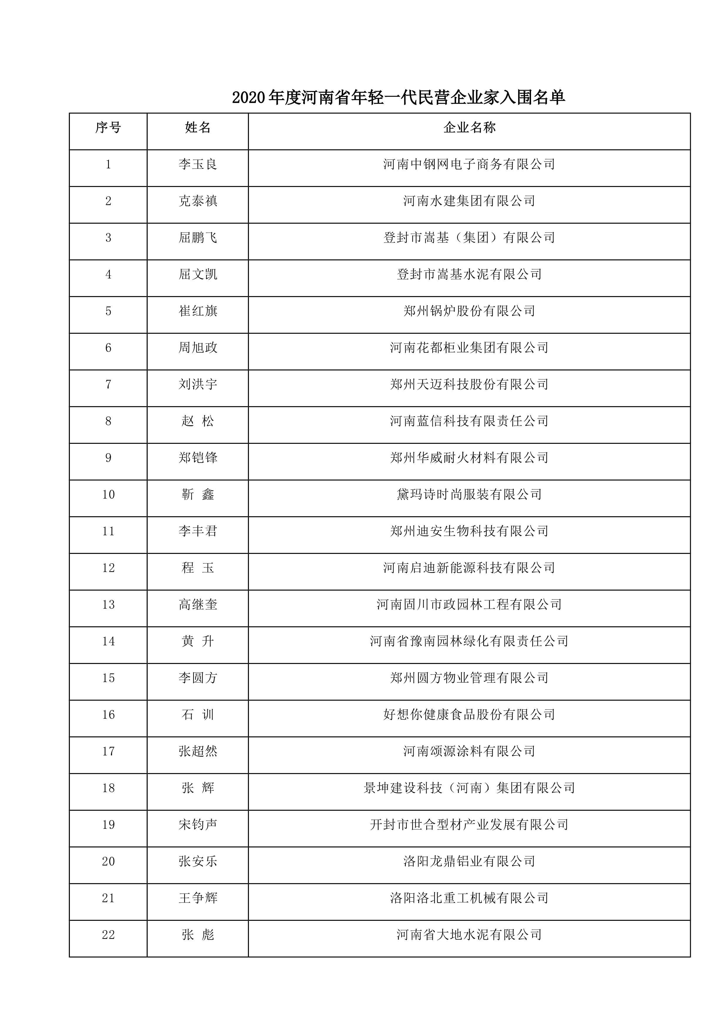 附件:2020年度河南省年輕一代民營(yíng)企業(yè)家入圍名單