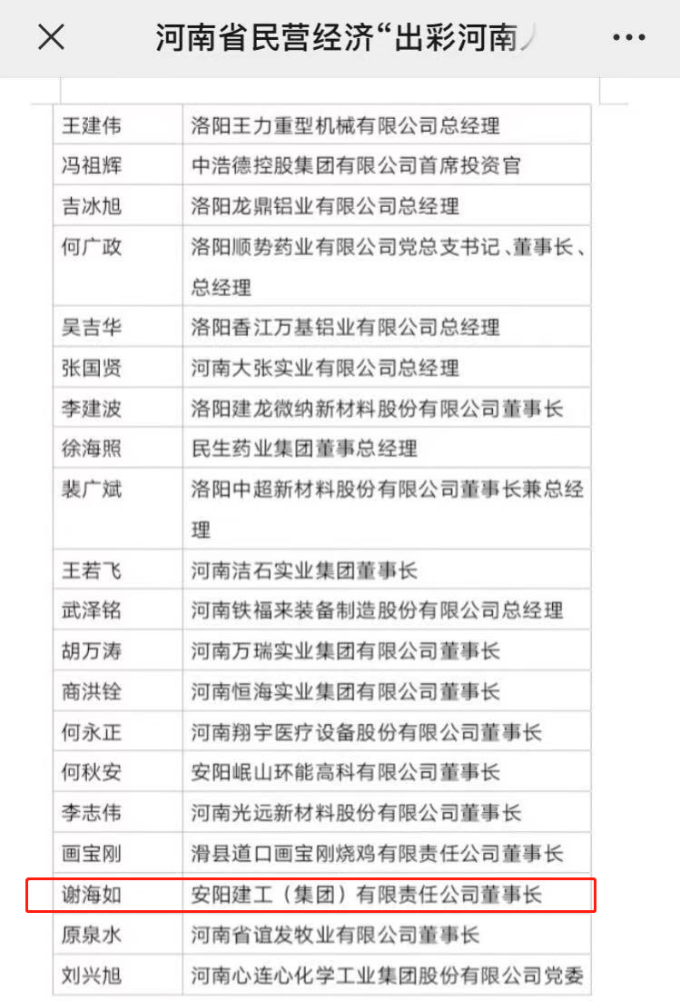 喜訊!集團(tuán)公司董事長謝海如同志榮獲“建行杯”第一屆河南省民營經(jīng)濟(jì)“出彩河南人”標(biāo)兵榮譽(yù)稱號