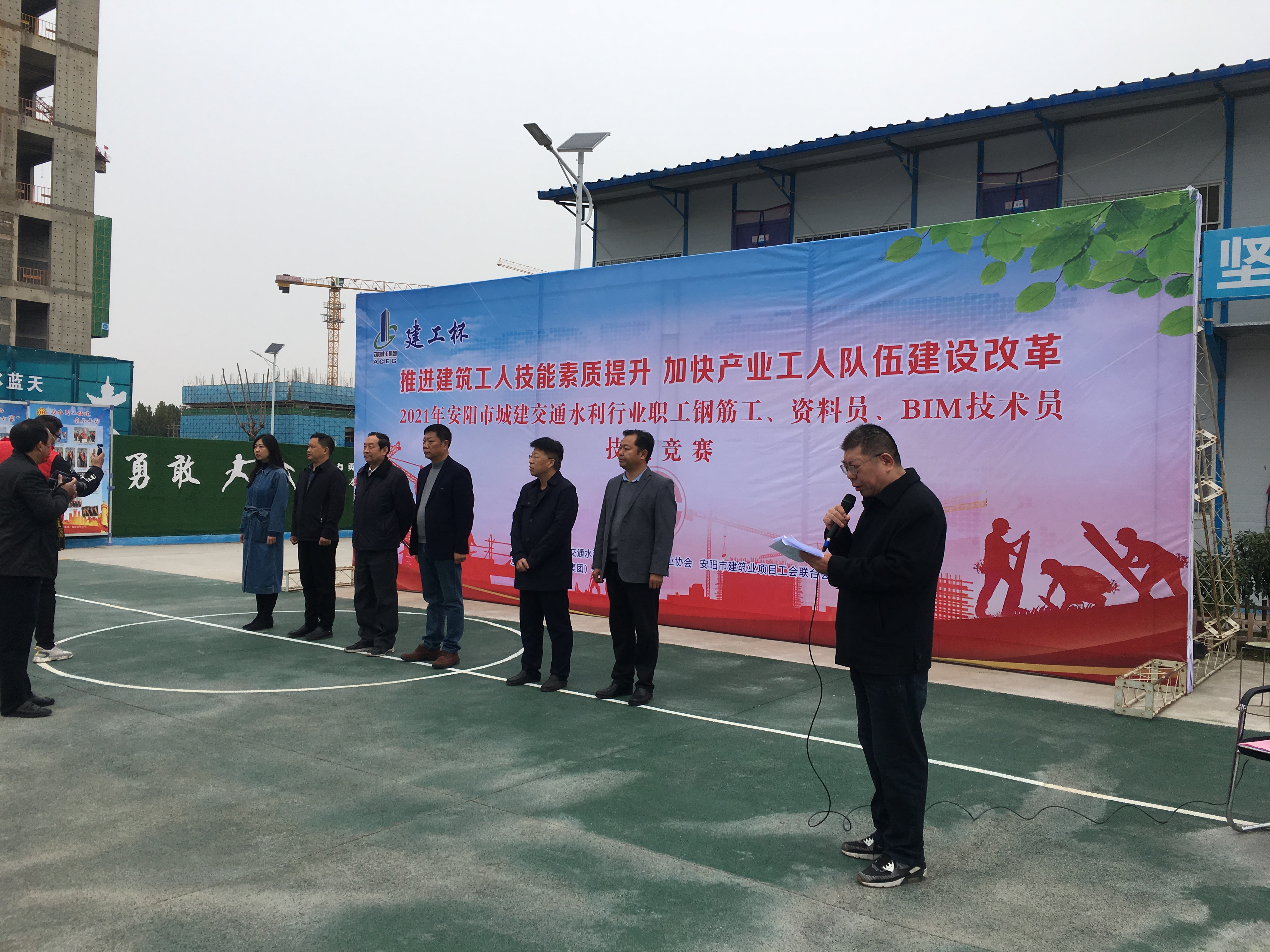 為深入貫徹落實(shí)習(xí)總書記關(guān)于產(chǎn)業(yè)工人隊(duì)伍建設(shè)改革的重要指示精神,在全市建筑行業(yè)大力弘揚(yáng)工匠精神,激發(fā)系統(tǒng)職工創(chuàng)新創(chuàng)業(yè)熱情,造就一支高素質(zhì)的建筑產(chǎn)業(yè)工人隊(duì)伍,扎實(shí)推進(jìn)《安陽市產(chǎn)業(yè)工人隊(duì)伍建設(shè)改革實(shí)施方案》落地生根,營造勞動(dòng)光榮、技能寶貴的社會(huì)風(fēng)尚和精益求精的敬業(yè)風(fēng)氣,2021年安陽市城建交通水利行業(yè)鋼筋工、資料員、BIM技術(shù)員開賽儀式于10月20號(hào)上午在安陽建工集團(tuán)海悅國際大廈項(xiàng)目部隆重開幕。