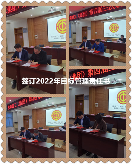 工會(huì)主席馬松林同志宣布了2021年度責(zé)任目標(biāo)考核結(jié)果??偨?jīng)理謝飛同志分別與市場(chǎng)營(yíng)銷(xiāo)中心、工程部等十家單位和部門(mén)簽訂了2022年目標(biāo)責(zé)任書(shū)。