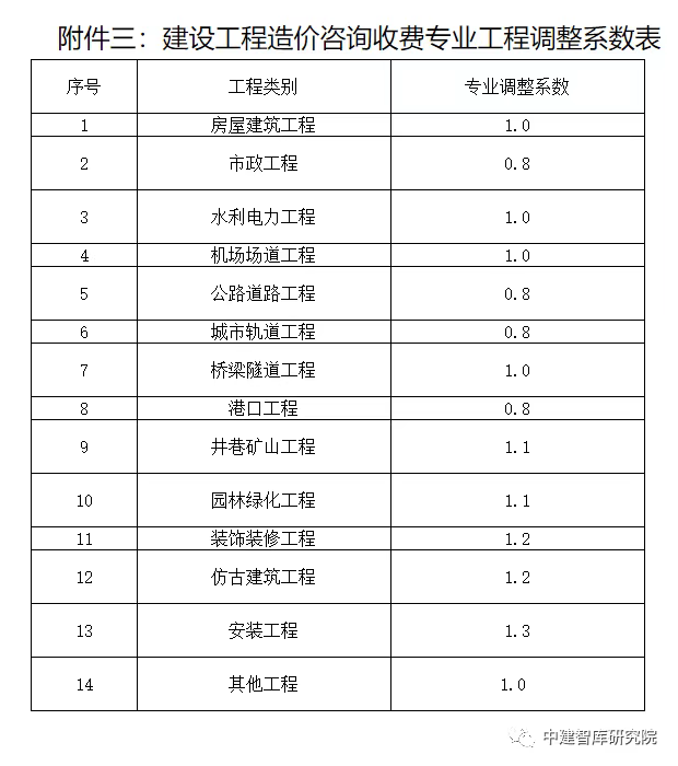 4.不同專業(yè)工程調(diào)整系數(shù)見(jiàn)附件三。