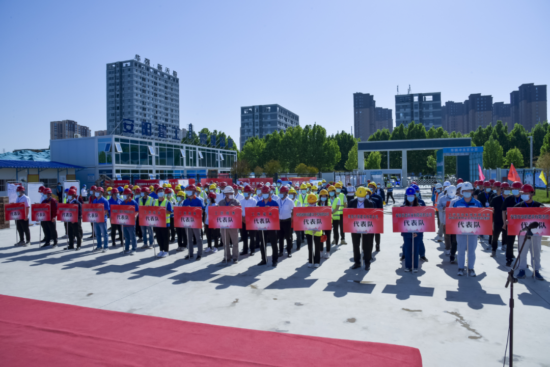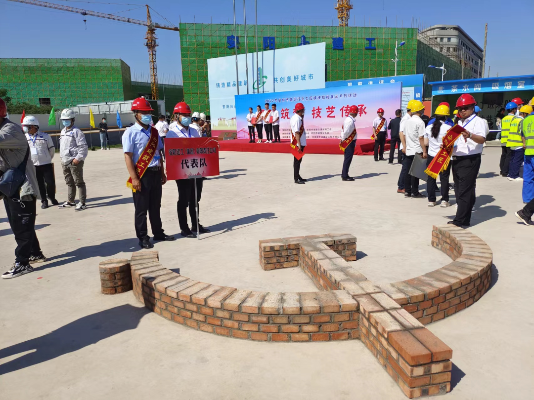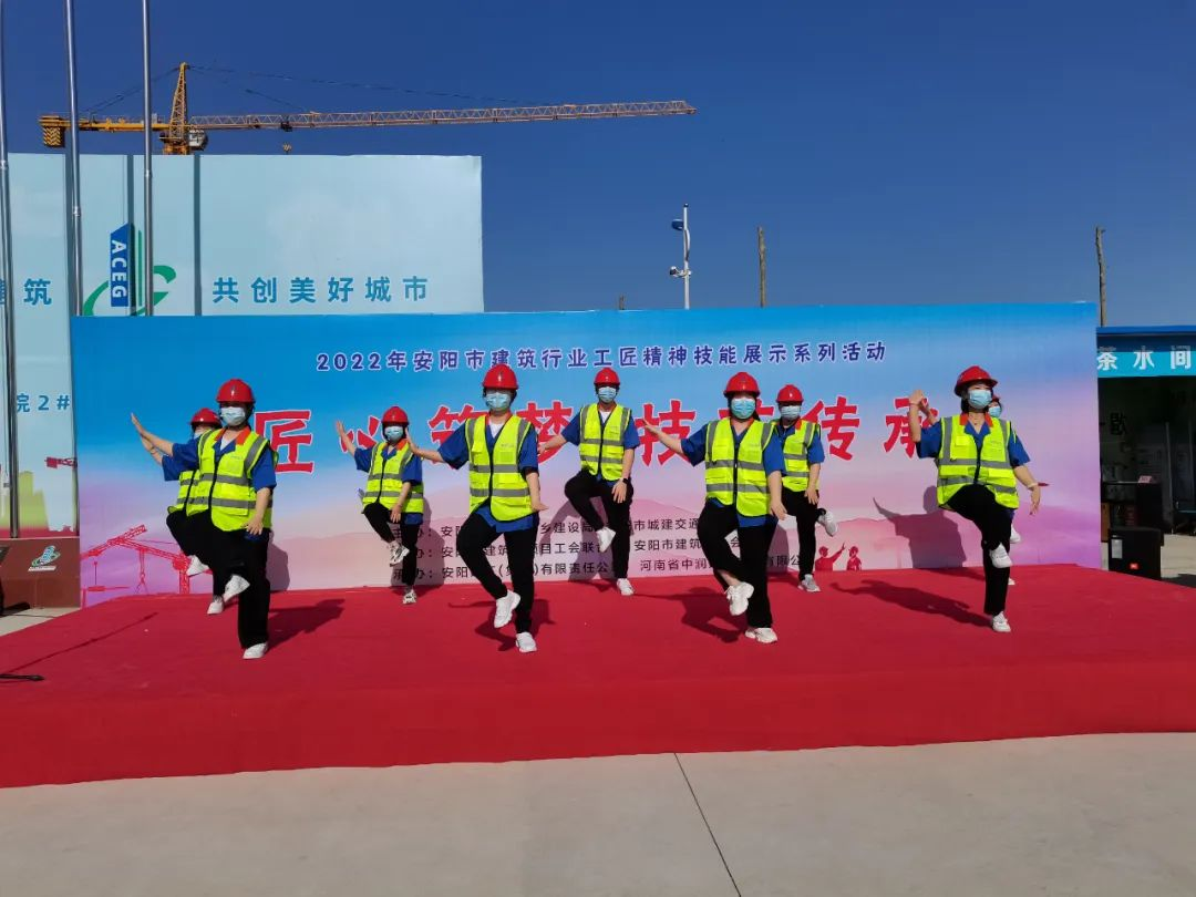 為深入學習貫徹習近平總書記致首屆大國工匠創(chuàng)新交流大會的賀信精神,進一步弘揚勞模精神、勞動精神、工匠精神,5月16日上午,2022年安陽市建筑行業(yè)“匠心筑夢 技藝傳承”工匠技能展示系列活動,在我集團公司承建的安陽師院綜合樓項目部舉辦。市人大常委會副主任、市總工會黨組書記、主席桑建業(yè),市總工會黨組成員、副主席、二級調(diào)研員劉勇謀,市住房和城鄉(xiāng)建設(shè)局黨組成員、二級調(diào)研員申文忠,市總工會四級調(diào)研員苗廣軍,市建筑業(yè)協(xié)會會長、公司董事長謝海如等參加活動。市城建交通水利工會主席梁曦主持開幕式。