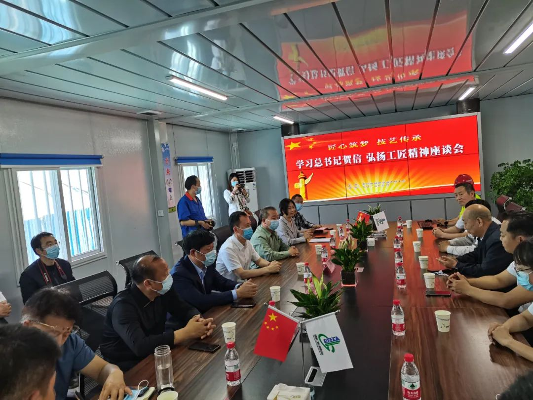 最后,在項目部會議室召開了“學習總書記賀信 弘揚工匠精神”座談會,工匠代表和企業(yè)負責人暢所欲言,談感受、談歷程、談發(fā)展。