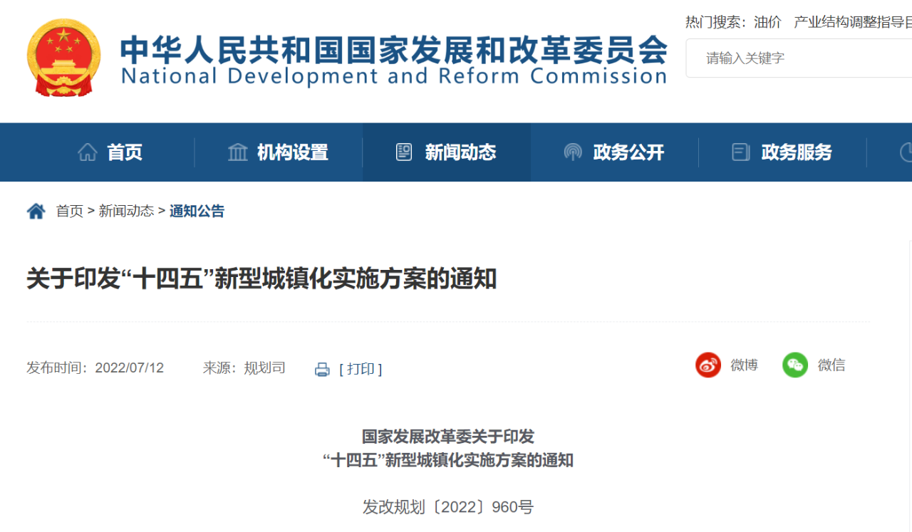 國家發(fā)展改革委關(guān)于印發(fā)“十四五”新型城鎮(zhèn)化實施方案的通知