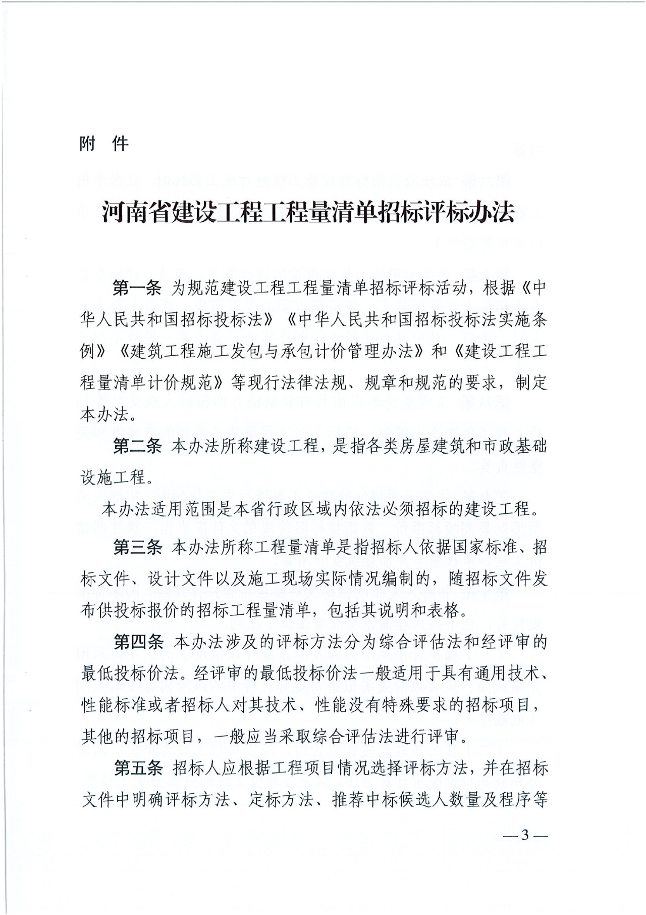 河南省住建廳印發(fā):河南省建設(shè)工程工程量清單招標(biāo)評(píng)標(biāo)辦法
