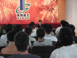 培訓(xùn)結(jié)束前,60名學(xué)生根據(jù)其所學(xué)專業(yè)知識(shí)及其綜合情況,分別由相關(guān)部門安排在安全員、質(zhì)檢員、材料員、預(yù)算員、資料員、測(cè)量員崗位上實(shí)習(xí)。9月21日下午,崗位所在單位工程管理部、材料設(shè)備部、預(yù)算部、技術(shù)中心、預(yù)制構(gòu)件廠的領(lǐng)導(dǎo)與學(xué)生們見面。