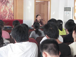 盧麗娜經(jīng)理講職業(yè)引導(dǎo) 辦公室李樹紅主任講公司企業(yè)文化