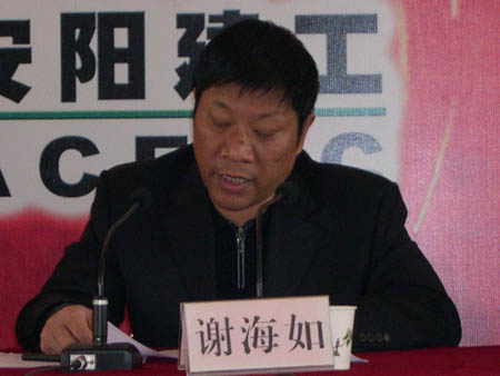 會議由公司董事、副總經(jīng)理劉艷軍同志主持。與會人員包括集團(tuán)公司各位股東、股東代表、特邀職工代表。第二屆董事會候選人、第二屆監(jiān)事會候選人參加了會議。下午2:10劉艷軍同志宣布大會開始,雄壯的《中華人民共和國國歌》在會場內(nèi)響起。會議首先由董事長謝海如同志匯報本屆董事會工作情況,三年來公司的基本情況,公司的狀態(tài)及應(yīng)解決的問題,董事會存在的問題及今后董事會努力的方向,謝海如董事長的匯報既指出上一屆董事會的工作成績又指出存在的問題和不足,對公司的未來發(fā)展提出了較為務(wù)實的設(shè)想。