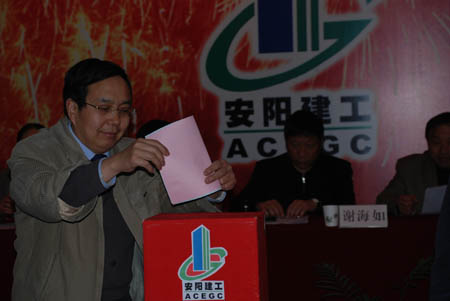 為順應(yīng)體制改革需要,進(jìn)一步規(guī)范企業(yè)法人治理機構(gòu),2008年3月19日下午,公司在四樓會議室召開了2008年安陽建工集團(tuán)第一次股東會、第二屆一次股東代表大會,第二屆一次董事會,第二屆一次監(jiān)事會,會議選舉產(chǎn)生了新一屆董事會、監(jiān)事會成員,順利完成了公司董事會、監(jiān)事會換屆工作,會議取得圓滿成功,謝海如同志再次當(dāng)選為集團(tuán)公司董事長。