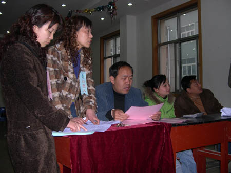 股東分組對兩個報告進(jìn)行了熱烈討論,董事長謝海如代表董事會對股東提出的問題進(jìn)行了詳細(xì)解答。股東表決通過了兩個工作報告,按程序?qū)徸h通過了《關(guān)于修改公司章程的議案》、《關(guān)于公司董事會換屆選舉的議案》、《關(guān)于公司監(jiān)事?lián)Q屆選舉的議案》,宣讀并通過董事、監(jiān)事選舉辦法,唱票人、計票人、監(jiān)票人名單。大會表決通過了2008年第一次股東會決議。