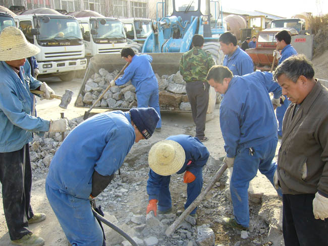 2004年初,六號(hào)車遠(yuǎn)征少洛(少林寺——鄭州)高速載譽(yù)歸來(lái),主車司機(jī)崔國(guó)慶看著整修過(guò)的罐體,心中有些不悅,原來(lái),修補(bǔ)攪拌葉片時(shí)電焊把罐體上的漆燒掉了幾片,俗話說(shuō)的好:汽車的頭,司機(jī)的臉,這不僅影響了車的整體美,而且有悖于公司“攪拌運(yùn)輸車是流動(dòng)的廣告,是公司的戶外形象,是古城安陽(yáng)街頭一道亮麗的風(fēng)景線”的要求。怎么辦?崔國(guó)慶二話沒(méi)說(shuō),從倉(cāng)庫(kù)領(lǐng)出手提除銹機(jī),打磨,除銹,刷防銹漆。司機(jī)班長(zhǎng)楚樹(shù)林也熱情幫忙,兩人拉氣泵,自己動(dòng)手當(dāng)起油工。剛開(kāi)始沒(méi)有經(jīng)驗(yàn),噴出的色澤、薄厚不一,但很快就找到了竅門,經(jīng)過(guò)幾天忙碌,六號(hào)車變的如同新車。隨后,裝載機(jī)司機(jī)吳愛(ài)國(guó)也把裝40重新噴漆。泵工班維修混凝土泵已稱得上專家,馬士兵,李建民,孟慶印,張志秀,楊坤個(gè)個(gè)是一把好手,精心保養(yǎng)與維修,使2號(hào)、3號(hào)泵使用至今從沒(méi)換過(guò)大件,受到拖泵生產(chǎn)廠家售后人員的交口稱贊。2004年底,攪拌主機(jī)出現(xiàn)漏漿,其他部位分別出現(xiàn)不同程度的磨損,生產(chǎn)技術(shù)部決定:以我為主,適當(dāng)聘請(qǐng)外部專業(yè)人員。機(jī)修、泵工、生產(chǎn)、司機(jī)班員工以及管理人員全力以赴,并且根據(jù)多年使用的經(jīng)驗(yàn),對(duì)不很合理、問(wèn)題多發(fā)部位進(jìn)行整改,收效甚大。從此,利用節(jié)假日維修主機(jī)成了不成文的規(guī)定。2007年春節(jié)前后近40天時(shí)間,公司對(duì)攪拌主機(jī)、管理系統(tǒng)進(jìn)行大規(guī)模改造,并新增骨料倉(cāng)、粉料倉(cāng)各一座,其中有一半多的工作是公司員工動(dòng)手做的。