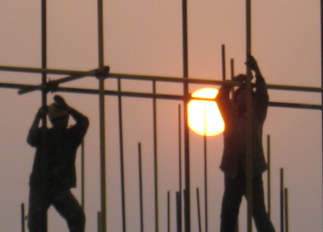 安陽建工集團(tuán)承建的新鄉(xiāng)博物院工程是新鄉(xiāng)市的重點(diǎn)工程項(xiàng)目,建成后是一座用于服務(wù)公眾、傳承文化、展示形象的標(biāo)志性建筑。為了工程的順利建成,從2007115開工以來,我們舉全公司之力,從建設(shè)最高的質(zhì)量出發(fā),調(diào)動(dòng)了最好的技術(shù)人員,一流的施工設(shè)備和經(jīng)驗(yàn)豐富的施工隊(duì)伍,投入了大量的人、財(cái)、物等各種資源,全力投入到了為新鄉(xiāng)市的重點(diǎn)工程建設(shè)之中。目前該該工程進(jìn)入主體一層收尾階段,當(dāng)前正值春暖花開,為了抓住這大好的施工季節(jié),趕工期、保質(zhì)量,新鄉(xiāng)博物院項(xiàng)目部全體員工正在夜以繼日、加班加點(diǎn)的緊張施工,他們正在用辛勤的汗水編織美好的明天。(圖為職工在夕陽的映襯下搭設(shè)腳手架)