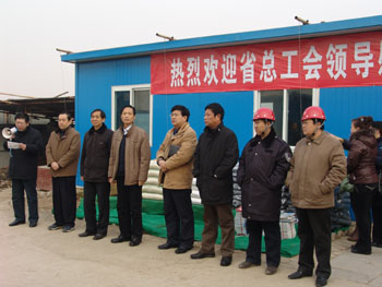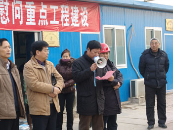公司工會主席馬松林同志主持了儀式,集團(tuán)公司總經(jīng)理謝海如同志致歡迎詞,市人大副主任、市總工會主席聶孟磊出席了送溫暖儀式。電子信息學(xué)校項(xiàng)目經(jīng)理王振東作了表態(tài)發(fā)言,一定會將工會領(lǐng)導(dǎo)的關(guān)懷轉(zhuǎn)化為工作的動力,搞好安全生產(chǎn),保質(zhì)保量完成工程建設(shè)。