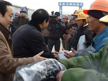 省總工會副主席王永領(lǐng)向辛勤工作在建設(shè)一線的廣大職工、農(nóng)民工表示了親切的慰問。他說,隨著改革開放和工業(yè)化、城鎮(zhèn)化進(jìn)程加快,越來越多的農(nóng)村富余勞動力進(jìn)入城市務(wù)工,辛勤勞作在城市的各個行業(yè)和不同崗位,為促進(jìn)城市的繁榮作出了貢獻(xiàn),成為推動經(jīng)濟(jì)和社會發(fā)展不可忽視的力量。總工會作為廣大職工的“娘家”,始終將農(nóng)民工的冷暖掛在心上,這次送來棉衣和知識讀本,就是希望農(nóng)民工能夠安全地過冬,愉快地過節(jié)。王主席希望廣大農(nóng)民工朋友能夠不斷提高文化素質(zhì)和業(yè)務(wù)技能,在各自的崗位上創(chuàng)造出新的業(yè)績,為把安陽建設(shè)成為豫北區(qū)域性中心強(qiáng)市作出新的貢獻(xiàn)。