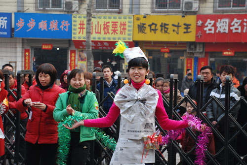 今年的元宵喜樂會我們共分成了紅、藍(lán)、綠三個隊,每個隊員雖然崗位不同、部室不同,但是,有團(tuán)結(jié)一致團(tuán)隊的精神和積極向上的必勝信念。活動開始,綠隊的一段充滿活力的開場熱舞《火花》烘托出了歡快、向上的氣氛;紅隊的集體大拜年別有新致,展示了建工人的情懷;藍(lán)隊的一曲《春天里》讓大家掌聲不斷。 接下來的游戲活動更是精彩激烈,有搶凳子、削蘋果、取長補(bǔ)短等6個游戲,中間穿插了猜燈謎學(xué)兔跳,寓意了建工人兔年步步高的兆頭,最后一個服裝模特的游戲,各隊用廢報紙和其他道具發(fā)揮想象和設(shè)計打造出來的模特,個個新奇迷人,幾位模特的報紙時裝秀表演更是為游戲錦上添花.經(jīng)過緊張而又精彩的環(huán)環(huán)競技比賽,綠隊以領(lǐng)先的分?jǐn)?shù)榮獲了本次活動的團(tuán)隊獎。